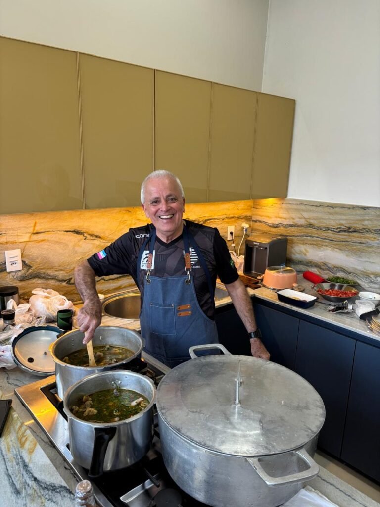 Fora do ambiente institucional, ele mantém viva a simplicidade que o acompanha desde o interior. Apaixonado por culinária, tem como marca registrada o preparo do tradicional “galopé”, prato mineiro feito com galo caipira e pé de porco. Cozinhar para amigos e familiares, diz, é um gesto de prazer e amor.